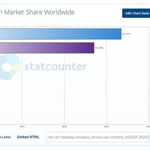 7月9日,据Statcounter数据显示,在发布四年后,Windows11如今以约52%的市场份额首次超越Windows10,成为全球范围内第一大Windows操作系统。