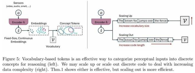 理论上,离散符号序列(即「语言」)足以表达连续数据中任意精度的信息,并且如图 5 所示,通过增加序列长度来扩展其表达能力,远比扩大词汇表更高效 。