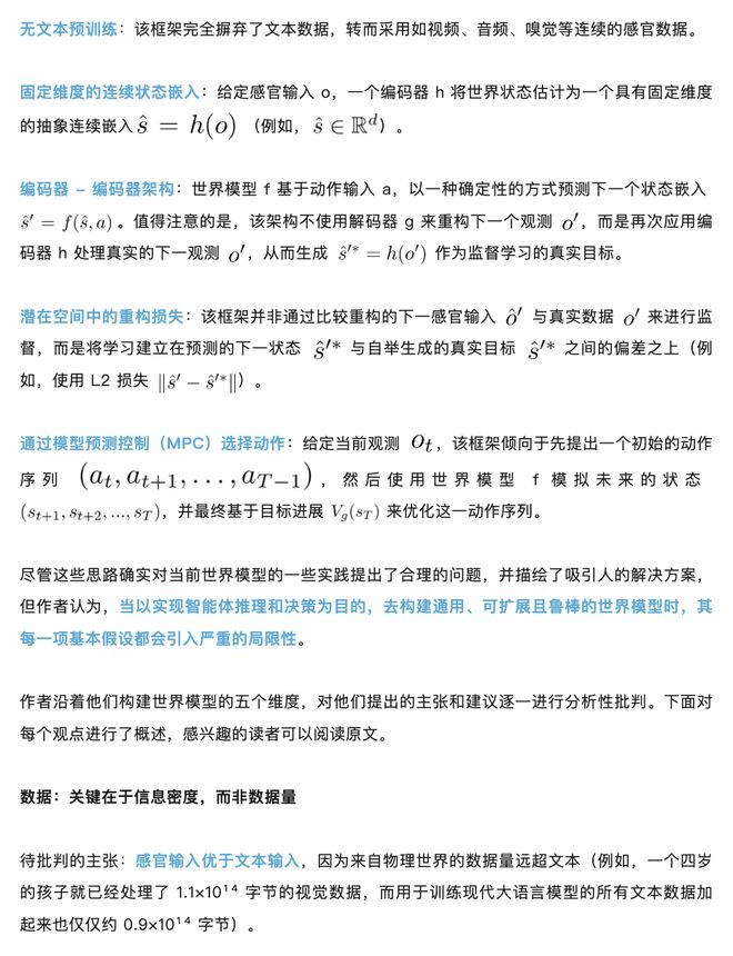 一个以 Yann LeCun 为代表的学派在构建世界模型的五个维度 ——数据、表征、架构、目标和用途