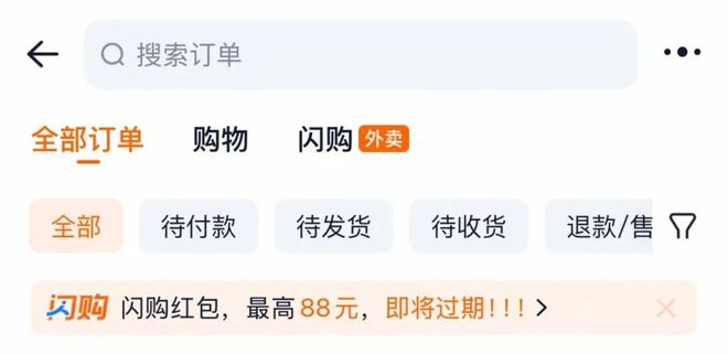 淘宝APP订单页面会区分显示购物订单和闪购订单