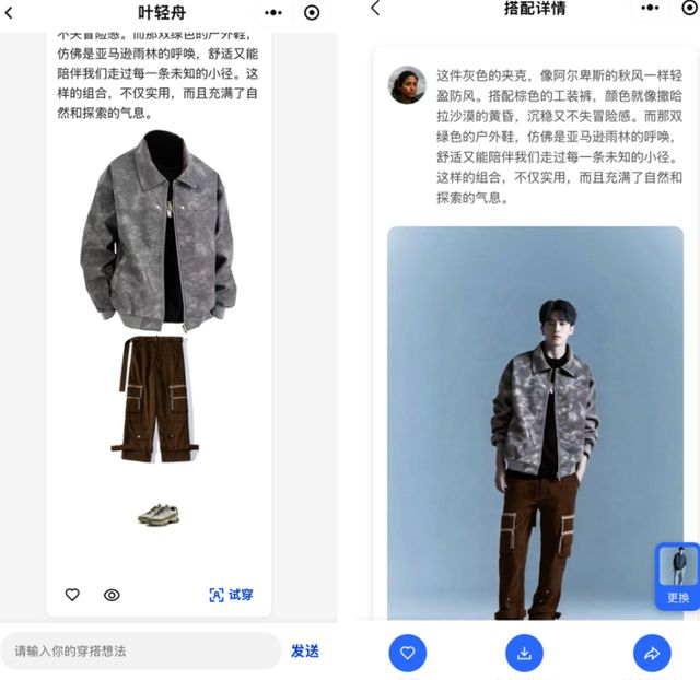 “男生听劝”则定位的是“你的AI穿搭女友”。内置不同性格的AI女友,会点评用户上传的穿搭照片,根据上传的照片和穿衣需求,结合约会/面试/聚会等场景,推荐适合的衣服、裤子、鞋子,还可以将选中的搭配直接穿到用户的照片上。