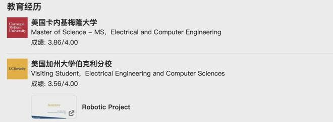 据领英页面显示,王浩帆曾是加州大学伯克利分校的访问学生,后在卡内基梅隆大学获得电气与计算机工程专业硕士学位。