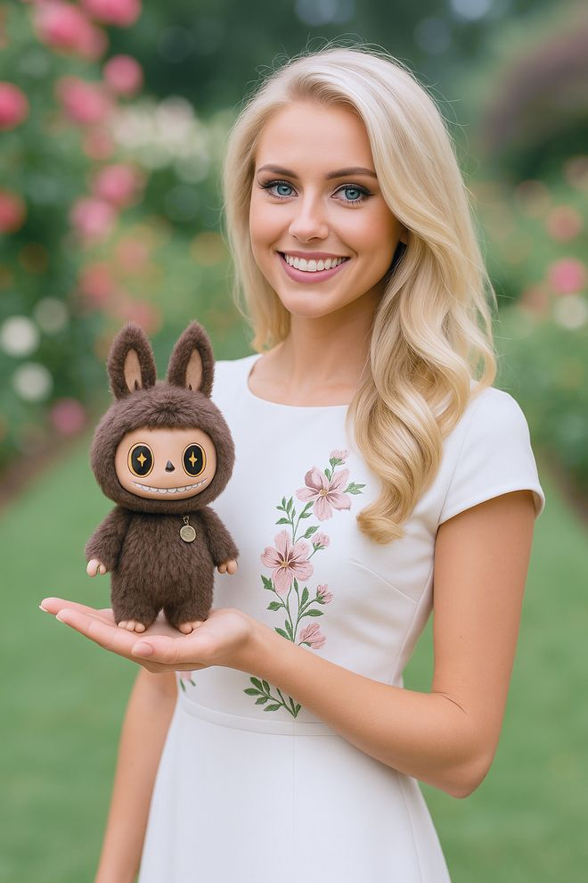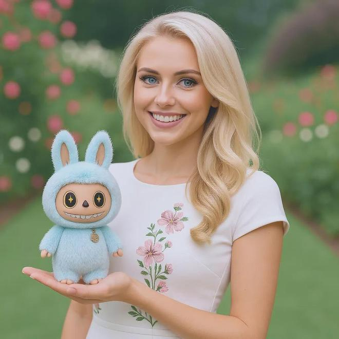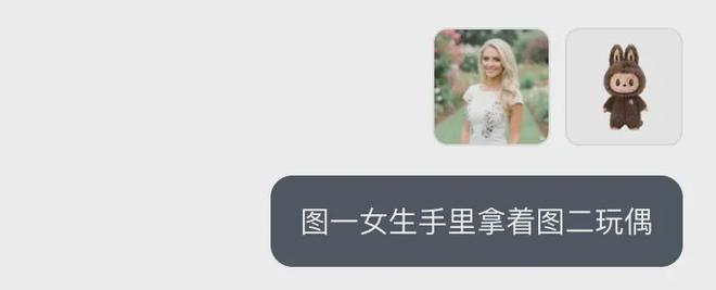 我们还可以用它生成带货图片。上传人物照片和产品图,输入简单的提示词「让图一女生手里拿着图二玩偶」即可。除了手指略显奇怪外,其他细节几乎没什么瑕疵。