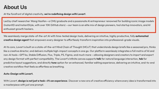 前段时间 Lovart 走红时,不少人就好奇这背后到底是何方「神圣」,仔细一扒发现首席研究员是王浩帆。