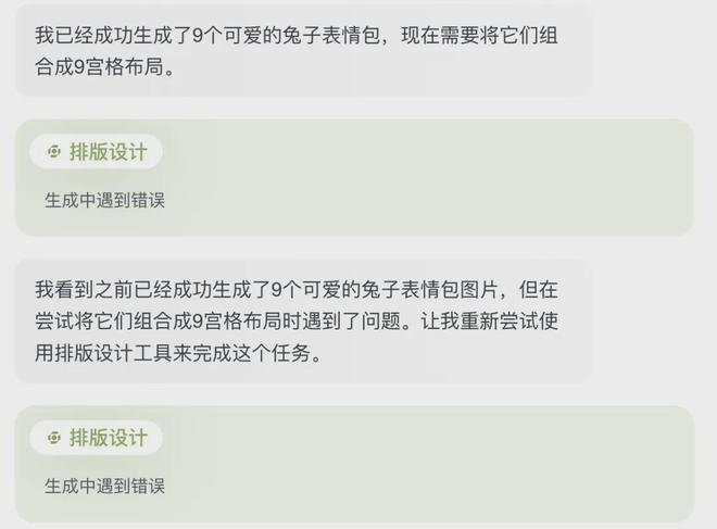二是在排版设计 9 宫格布局时,经常遇到生成错误导致任务失败。