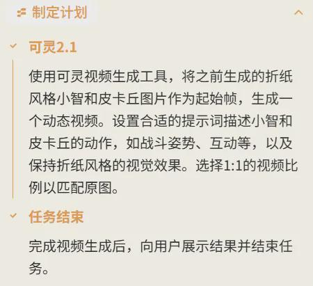 视频开始还挺有意思,但后面折纸风格的小智被捏扁又突然出现显得不合常理,这或许与 Agent 给出的提示词有关。