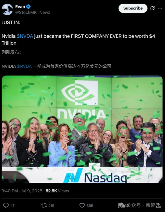 老黄封神!英伟达市值首破4万亿美元,全球第一
