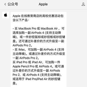 苹果中国开启限时教育优惠活动