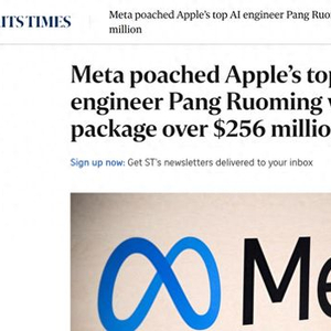 【环球网科技综合报道】7月10日消息,据外媒报道,Meta公司为吸引苹果基础模型团队负责人庞若鸣加入,提出了超过2亿美元的薪酬方案。