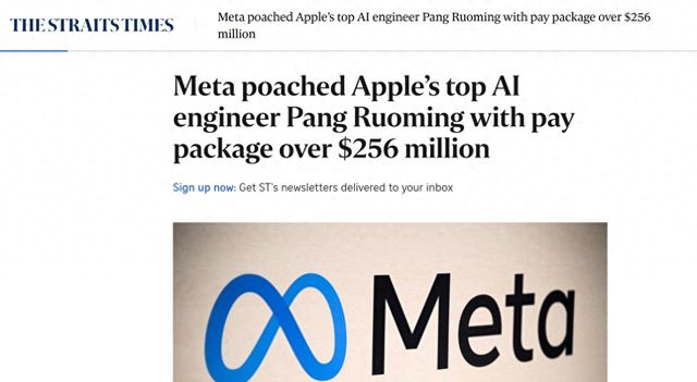 Meta为苹果AI团队负责人开出超2亿美元薪酬方案