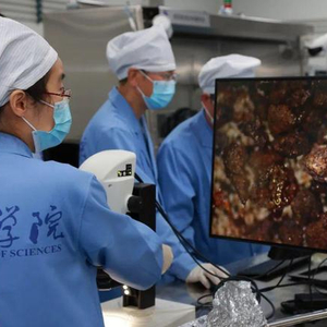 国家天文台科研人员查看岩屑显微镜成像照片。图片来源:中国科学院