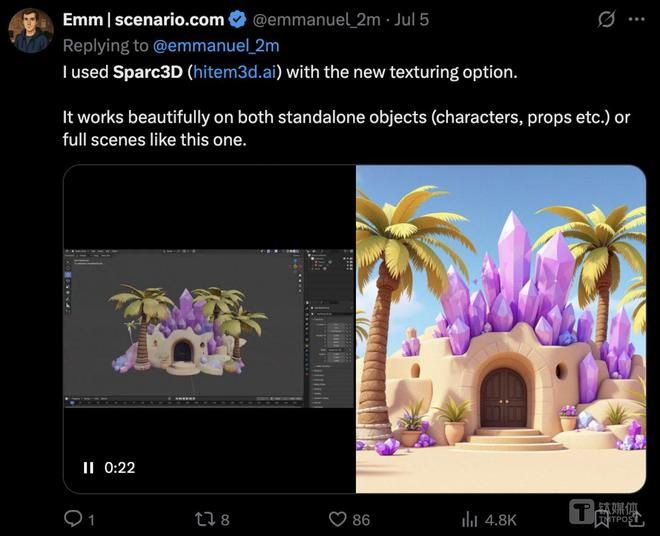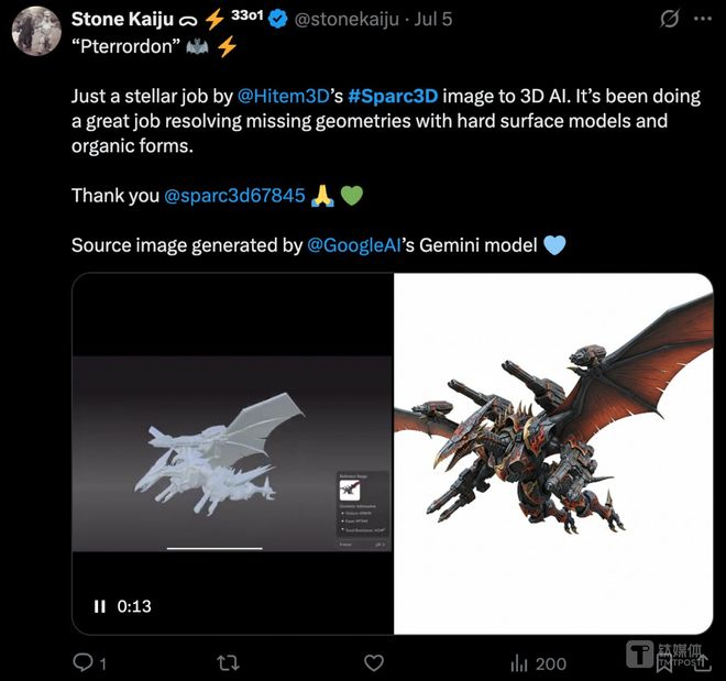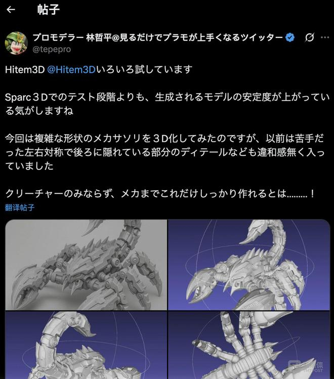 在社交媒体上,多位3d建模师参与测评表示,在该产品模型基础上,他们在第一步的建模效率上能平均提升 90% 以上,而该项产品能力的突破,让数字模型更具真实世界的微观质感,也将为3D打印、商品及工业设计、游戏开发和影视制作等市场注入全新生产力。