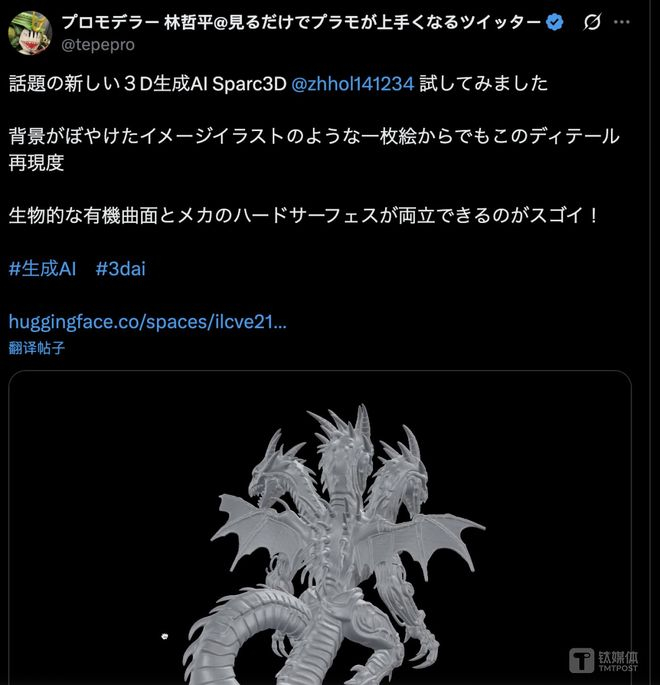 6月中旬,数美万物将Hitem3D在研发阶段的算法模型(Sparc3D)上线到了用户社区hugging face,模型demo在一周内冲至space趋势榜第一,并连续三周在space趋势榜上(不分模型类型)位列前三位。在YouTube/ X平台上有大量3d行业用户体验并发布了测评反馈,对于这款中国原创模型的高精度及结构精细化还原度给出了高度评价。