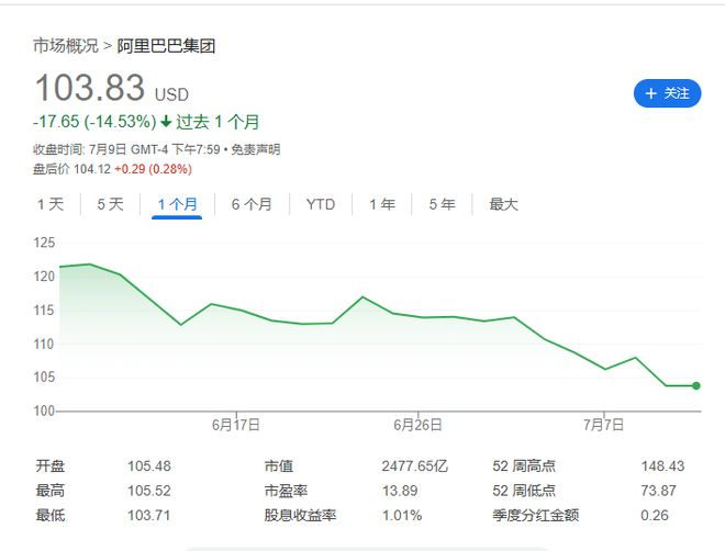 汇丰预计阿里巴巴将在未来几个季度继续加大即时零售和外卖业务投资,虽然这将对近期盈利前景造成显著冲击,但股价下跌已基本反映了盈利调整预期。过去一个月阿里巴巴股价累计跌超14%。