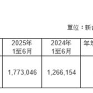 报告还显示,1-6月累计销售额为17730.46亿元新台币,较去年同期增加了40.0%。