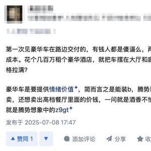 在知乎平台,一位网友直抒胸臆,表示从未见过豪车在路边交付,仿佛将佛跳墙放在塑料桶中摆到地摊上卖。