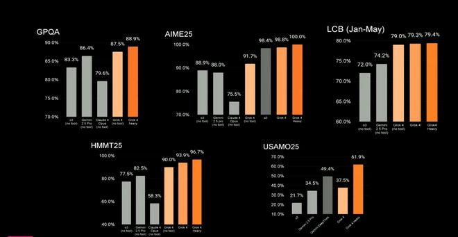 就纸面参数而言,Grok 4 也交出了亮眼答卷。