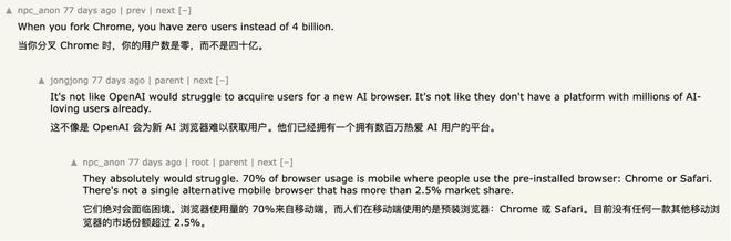 或许那个时候,OpenAI的评估结果是:重造一个浏览器几乎不可能和Chrome竞争。