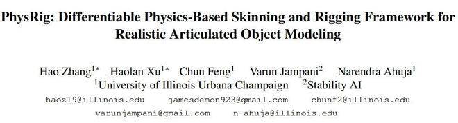 作者:张昊,伊利诺伊大学香槟分校博士生,研究方向为 3D/4D 重建、生成建模与物理驱动动画。目前在 Snap 担任研究实习生,曾于 Stability AI 和上海人工智能实验室实习。PhysRig 由 UIUC 与 Stability AI 联合完成,旨在推动角色动画迈向更真实、可控的物理解法。