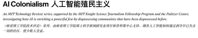 在为MIT Tech Review 撰写‘AI殖民主义’(AI Colonialism)系列报道时,Karen Hao逐渐关注到这一视角。