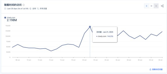 考虑到创始人 Roy 这么会玩社交媒体、擅长做爆款短视频引起病毒式传播,那理论上产品增长的数据表现应该挺不错。于是,我们去扒了下 Cluely 官网的流量数据。