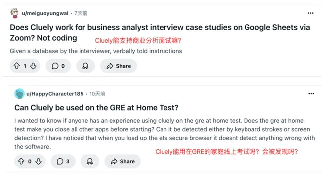 目前,海外知名论坛 Reddit 上使用 Cluely 的帖子,大约可以划分为两类:一类是咨询,用户会问能不能用在某考试/面试场景中,会不会被发现;另一类是吐槽,狂喷产品功能有多不好用。