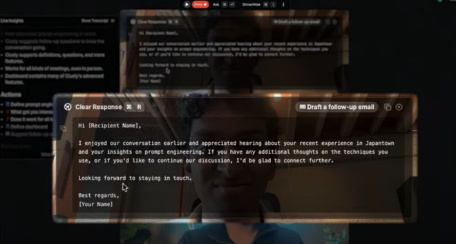 *Cluely在屏幕上为用户展示回复建议、总结信息