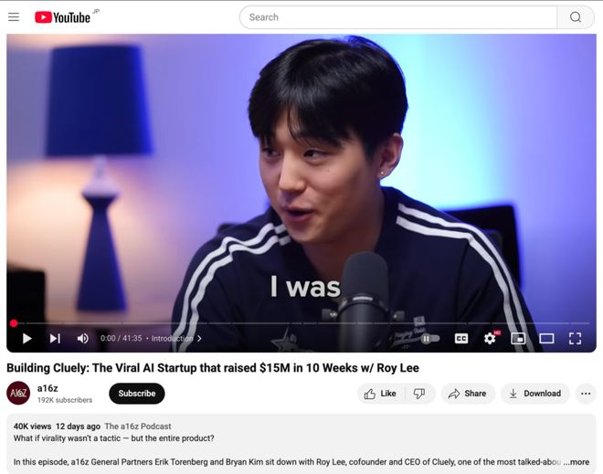 最近,一个 a16z 专访 Roy Lee 的视频,让他和 Cluely 的热度又大涨了一波。