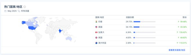 整个5月,Cluely流量来源最高的国家是印度,占到了总访问量的近30%。虽然,印度人也说英语,但 Cluely 一直是主打美国市场。