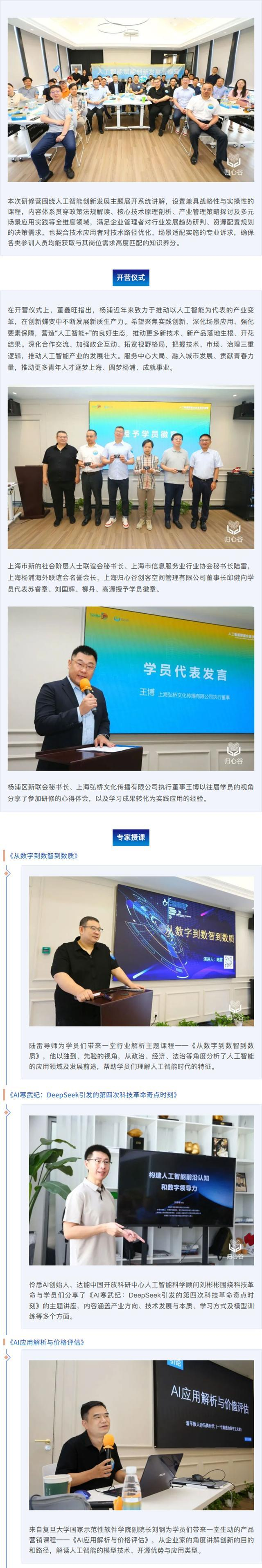在市委统战部的指导支持下,2025年7月7日至8日,为期两天的“人工智能赋能创新发展研修营”在杨浦区成功举办。杨浦区委常委、统战部部长董鑫旺出席开营仪式。这是第六届上海创新创业青年50人论坛年度第24个矩阵项目。