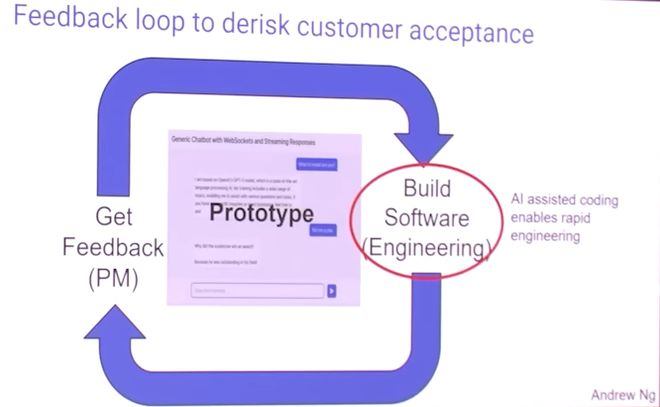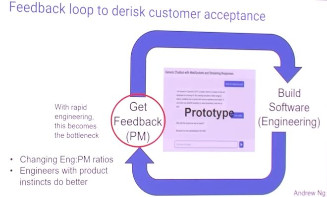 为了更快地前进,我经常考虑的另一件事是构建反馈循环,它随着我们使用人工智能编码辅助进行构建的方式而迅速变化。所以当你构建大量应用程序时,最大的风险之一是客户接受度,对吧?许多初创公司都在挣扎,不是因为我们无法构建我们想构建的任何东西,而是因为我们构建了一些东西,结果却发现没有人关心。所以在构建初创公司的大部分过程中,尤其是在应用程序方面,深度科技方面较少,技术初创公司也较少,但绝对是应用程序初创公司,我们经常构建软件。所以这是一项工程任务。然后我们会从用户那里获得反馈。这是一项产品管理任务。然后我们会回去,你知道,基本上是用户反馈,我们会调整我们对构建内容的看法,回去编写更多的软件。我们多次循环这个过程,迭代以达到产品市场契合。