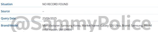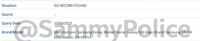 IT之家数周前报道,三星 Galaxy S26 Edge 型号为 SM-S947U(美版),Galaxy S26 Ultra 手机型号为 SM-S948U(美版)及 SM-S948N(韩版)。