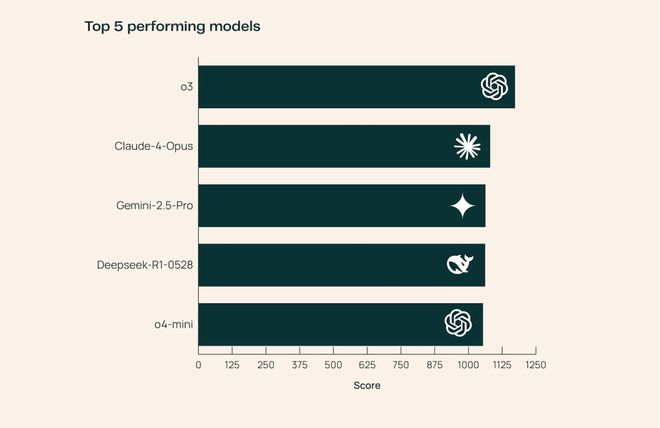 例如,o4-mini比GPT-4.1高出 2.9%,DeepSeek-R1也小胜自家模型DeepSeek-V3。