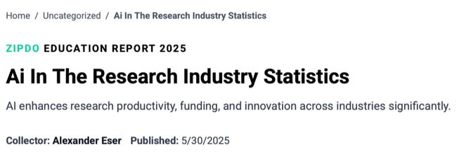 ZIPDO 2025教育报告显示,AI已经无缝融入70%的研究实验室,并在五年内推动相关科研论文数量增长了150%。