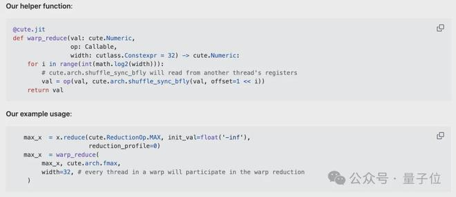 例如,RMSNorm中的输入张量TV布局、加载/存储策略以及归约辅助函数,可直接应用于softmax内核并仍能达到相近的吞吐量。