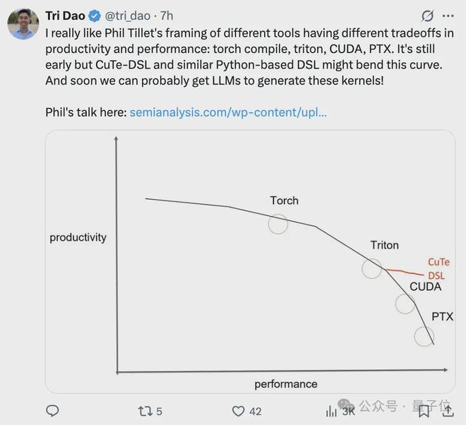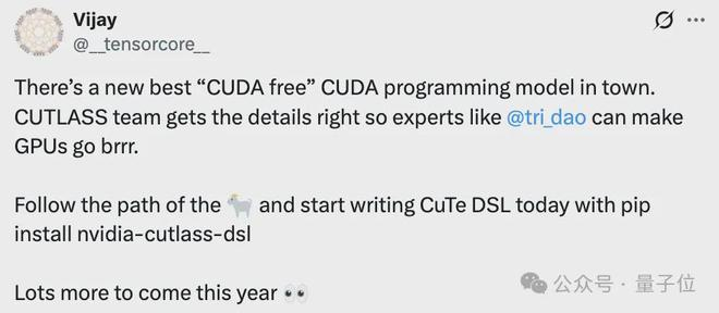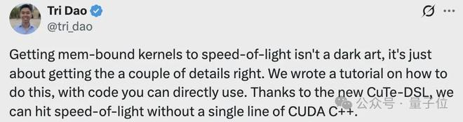 英伟达CUTLASS团队资深架构师Vijay转发,自夸他们团队做的CuTe-DSL把各种细节都打磨得很好,由此像Tri Dao这样的专家能够让GPU飞速运行。