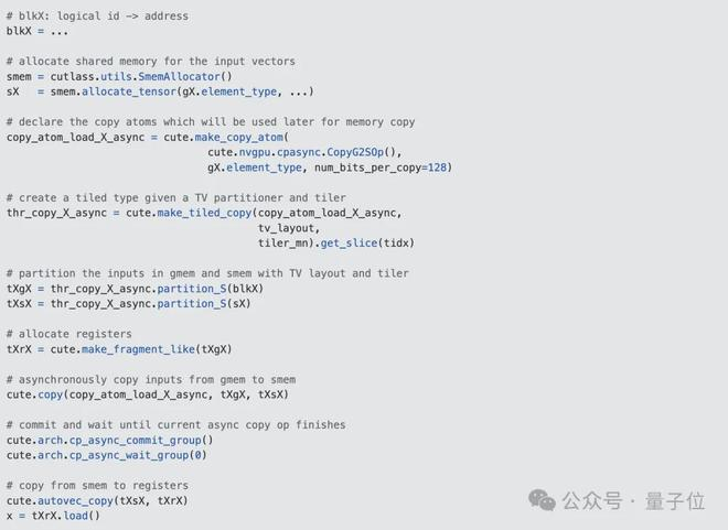 下面是用Python CuTe DSL写的加载操作代码片段,为了看着简单,这里省略了数据类型转换和掩码谓词的相关代码。