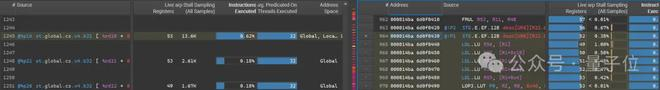 作者用NCU(Nsight Compute)工具分析了它的内存负载图和SASS代码,发现当每个SM要加载65k数据时,SM的资源被耗尽,结果就是大量寄存器溢出,还会频繁往HBM里回写数据,这才拖慢了速度。