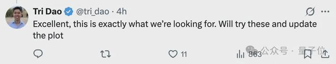 Tri Dao也作出了回应,“太棒了,这正是我们想要的,我们会试试这些方法,然后更新图表”。