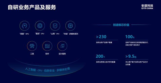 作为国内领先的芯片IP设计与服务提供商,安谋科技始终秉持“全球标准,本土创新”的理念,以更系统化的全局思维和更敏锐的产业嗅觉,致力于推动国内智能计算产业跃迁。据陈锋介绍,安谋科技充分发挥“桥梁”作用,紧密连接中国市场与Arm全球生态,积极引入Arm前沿技术与解决方案,满足国内芯片合作伙伴开发具有国际竞争力产品的需求;同时,公司也是助力本土客户高效研发与快速商业化的“引擎”,得益于长期稳健的自研业务技术投入,已拥有成熟且高效协同的自研业务产品矩阵,实现对国内半导体行业的深度赋能。