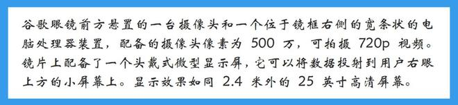 早在2012年4月,当时在掌控了智能手机操作系统半壁以上江山(安卓)的谷歌,推出了谷歌眼镜(Google Project Glass),它可通过声音控制拍照、视频通话和辨明方向,以及上网冲浪、处理文字信息和电子邮件等。
