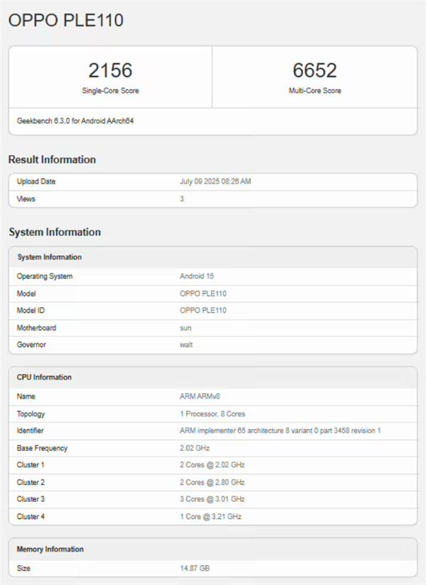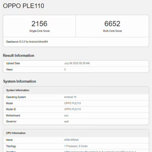 快科技7月11日消息,OPPO K13 Turbo系列机型跑分现身GeekBench跑分库,单核成绩为2156分,多核成绩为6652分。