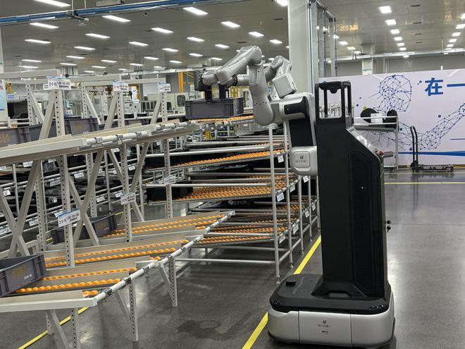 当记者靠近的时候,A2-W立即停住了所有的动作。“这是出于安全考虑,”富临精工(300432.SZ)工程部主任邓扬解释说,工厂环境中存在许多不确定因素,比如穿梭其间的工作人员和正在作业的叉车等。