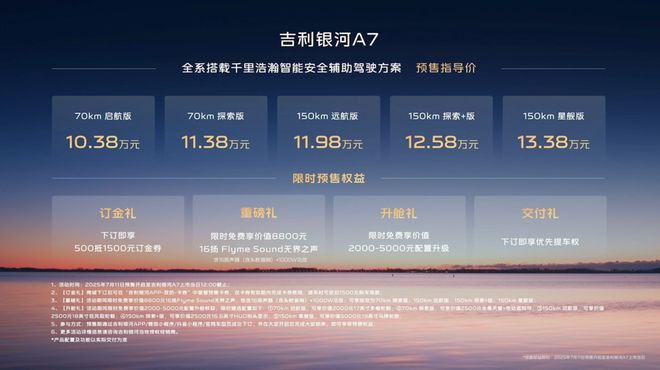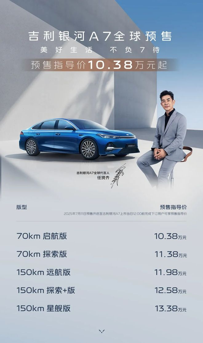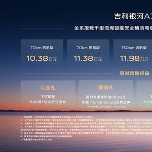 吉利银河A7启动预售:10.38万-13.38万元,综合续航超2100km