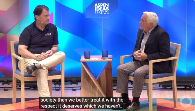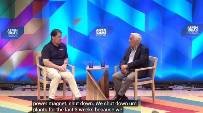 最近看了美国福特公司CEO Jim Farley 6月底在美国Aspen Institute(阿斯彭研究所)举办的活动中接受的访谈,觉得还挺有意思的。这个访谈视频是Aspen Institute于6月29日在油管上传。