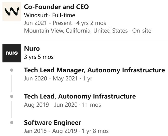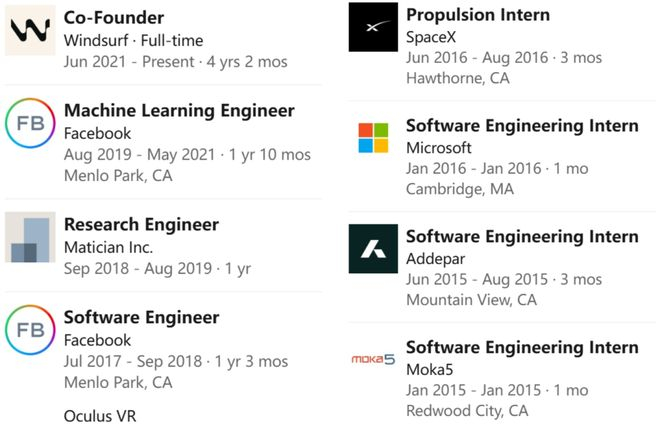 经历一系列实习后,他和Varun Mohan共同创办了Windsurf。