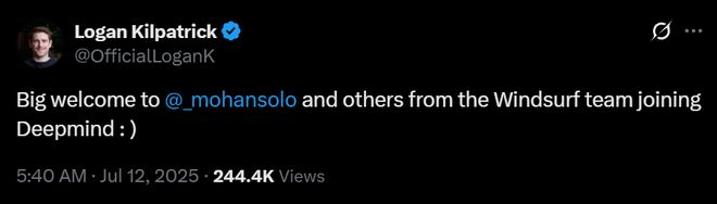 结果不得了,谷歌DeepMind立即以迅雷不及掩耳之势捷足先登,把Windsurf CEO、联创以及一票顶级研究员连夜撬走了!