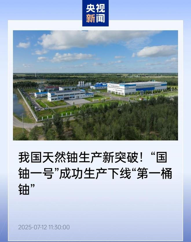 据央视介绍,“国铀一号”示范工程是我国产能规模最大、建设标准最高、建设速度最快的天然铀生产基地,具有绿色、经济、智能、高效的特点。今天“第一桶铀”的成功生产下线,进一步提升了我国在铀资源开发领域的国际影响力。