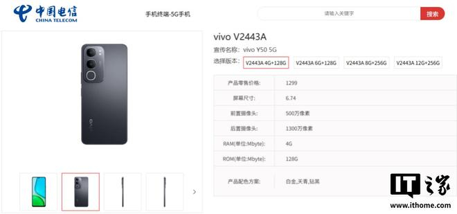 vivo Y50 5G 手机现身中国电信终端产品库,1299 元起