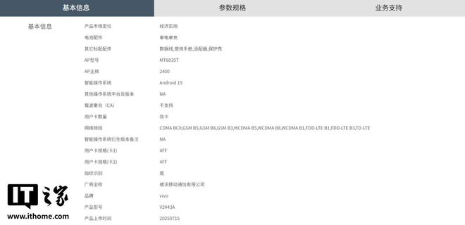 相关页面显示,vivo Y50 5G 手机采用矩阵相机模组设计,屏幕尺寸为 6.74 英寸(电容式触摸屏),前置 500 万像素镜头、后置 1300 万像素镜头,预装Android 15系统。